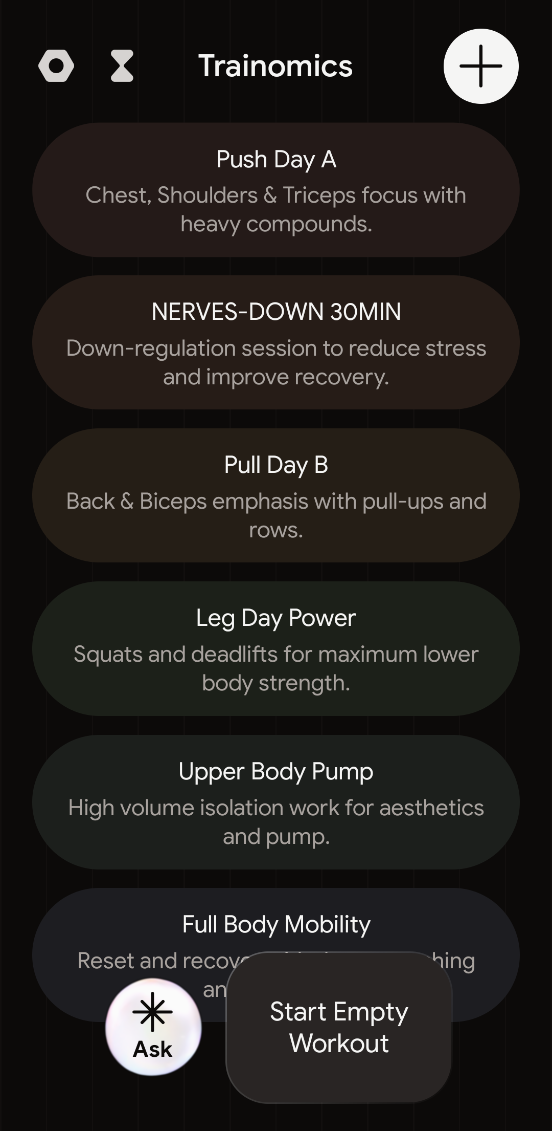 Most workout apps are either too simple or cluttered with unnecessary features. Trainomics finds the sweet spot: strictly professional tools wrapped in a beautiful, gesture-driven interface. I'm building this to solve the friction of tracking progress, ensuring that logging sets feels instant and satisfying.